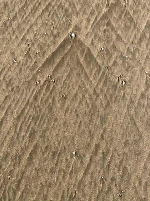 Hinter Cádiz überqueren wir mit einer Fähre den Guadalquivir, sehen seine Mündung in den Atlantik, so wie sie Columbus und Magellan vor 500 Jahren gesehen haben könnten. Über Cádiz fahren wir nach Huelva, oft direkt auf Sandstrand. Neben uns das Meer., die Vögel fliegen knapp über der Brandung, überholen uns leicht und fischen dann im Sturzflug. Bei Ebbe ist der Sand hart und wir schaffen die 30 km fast. Aber dann treibt uns das steigende Wasser in den höher gelegenen weichen Sand und wir stecken fest. Wir übernachten hinter Dünen in einer eiskalten Sandkule im grandiosem Sternenraum.